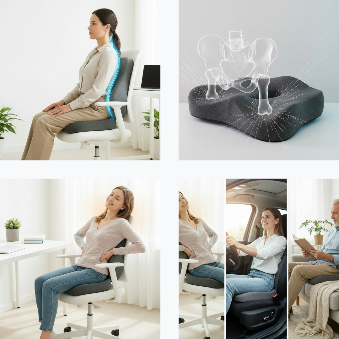 Designed to complement office chairs, car seats, and home seating for versatile use.